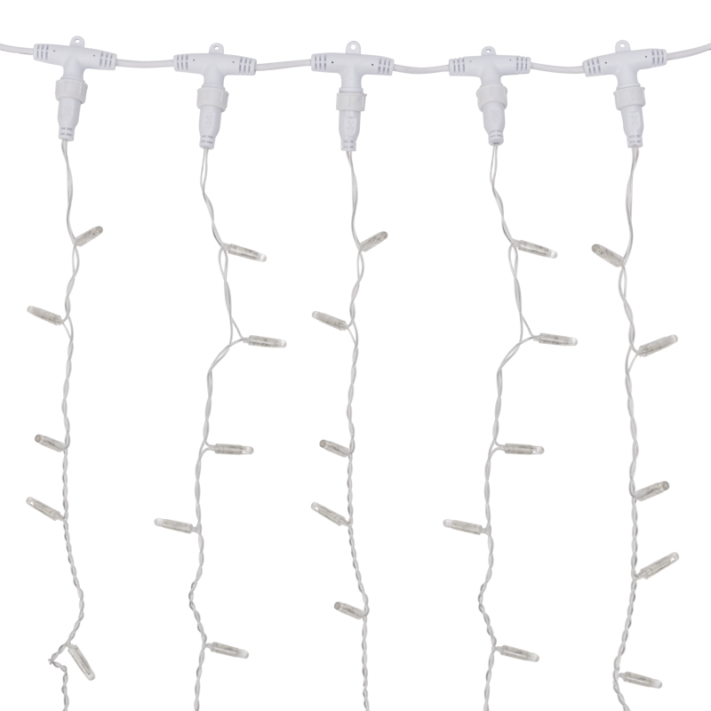 Профессиональная гирлянда-занавес 2×3 м с тёплым белым статическим свечением и прозрачным ПВХ-проводом. 448 LED, защита IP65, ресурс 30 000 ч, соединение до 4 занавесов. Серия PROFESSIONAL. Для улицы и интерьера.
