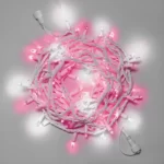 Нежная гирлянда с розовым мерцающим светом на белом каучуке. Длина 10 м. IP65 — подходит для улицы. Подчёркивает эстетику участка, витрины, фотозоны и зоны отдыха.