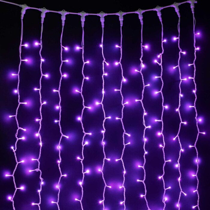 Гирлянда состоит из горизонтального несущего кабеля, от которого свисают вертикальные нити со встроенными LED. Благодаря разноцветным светодиодам и 8 режимам работы можно создавать динамичные световые эффекты: от мягких переливов до активных миганий. Это позволяет адаптировать оформление под разные события и настроение.
