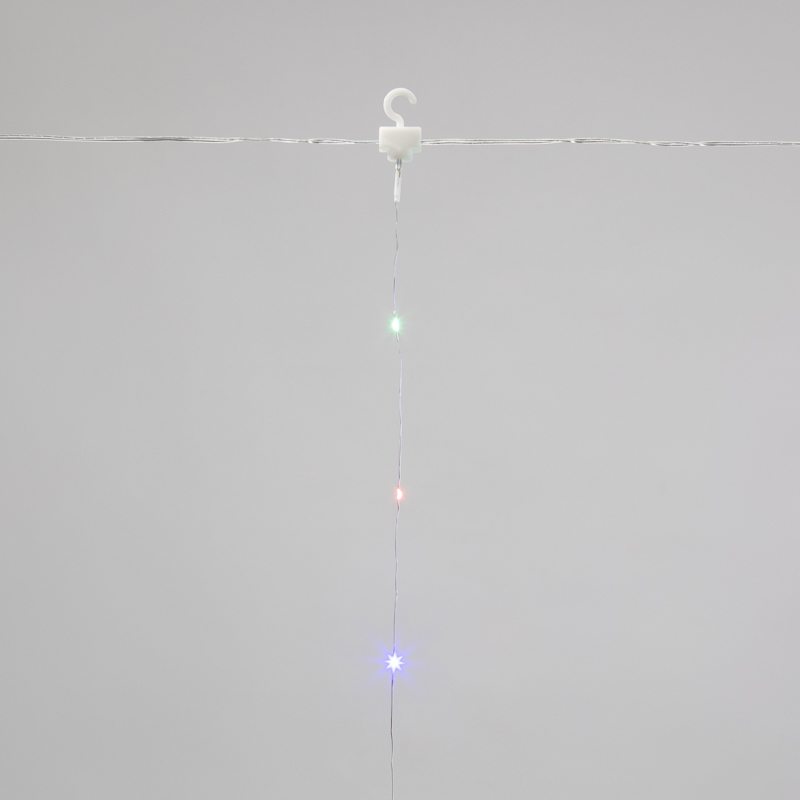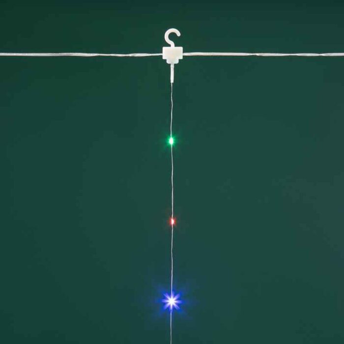 Занавес из росы — это современный вариант гирлянды, который отличается изящным и воздушным свечением. Тонкие нити напоминают капли утренней росы, переливающиеся в свете разноцветных диодов. Такой декор смотрится особенно эффектно в интерьерах, создавая яркий и в то же время лёгкий акцент.