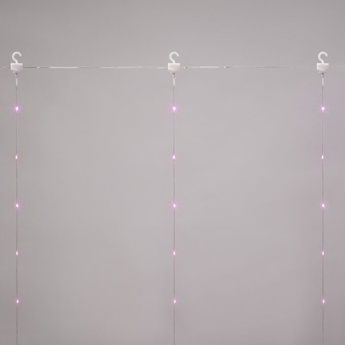 Гирлянда-занавес из росы 3×3 м с розовым свечением — это оригинальный способ наполнить интерьер теплом и романтикой. В отличие от белых или мультицветных моделей, розовый свет создаёт необычное настроение: он мягкий, деликатный и праздничный одновременно.