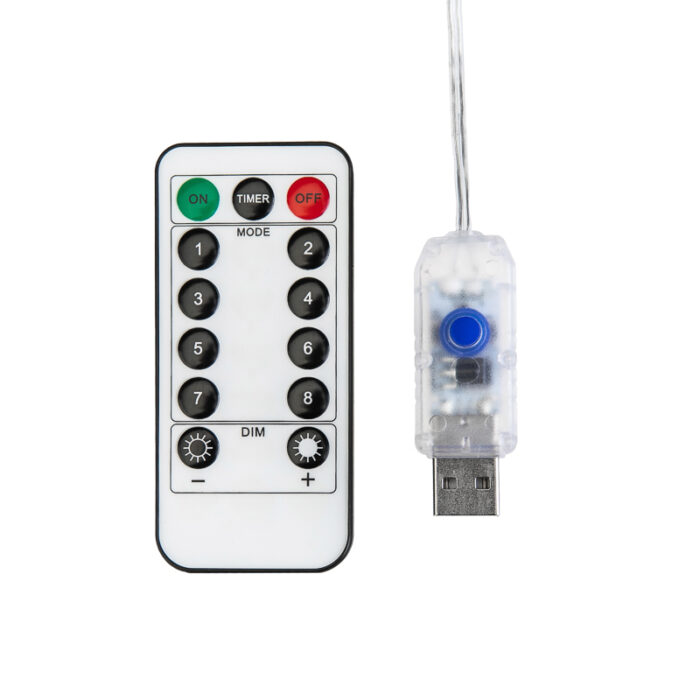 Гирлянда работает от адаптера 5 В, что делает её безопасной и энергоэффективной. Кабель длиной 3 м облегчает подключение даже в просторных залах.
