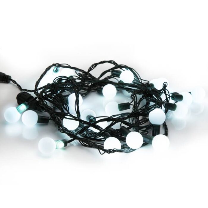 Гирлянда Мультишарики 5 м Белая Статика, 230 В, диаметр шарика 25 мм, 25 LED, Провод Тёмно-Зелёный ПВХ, IP20