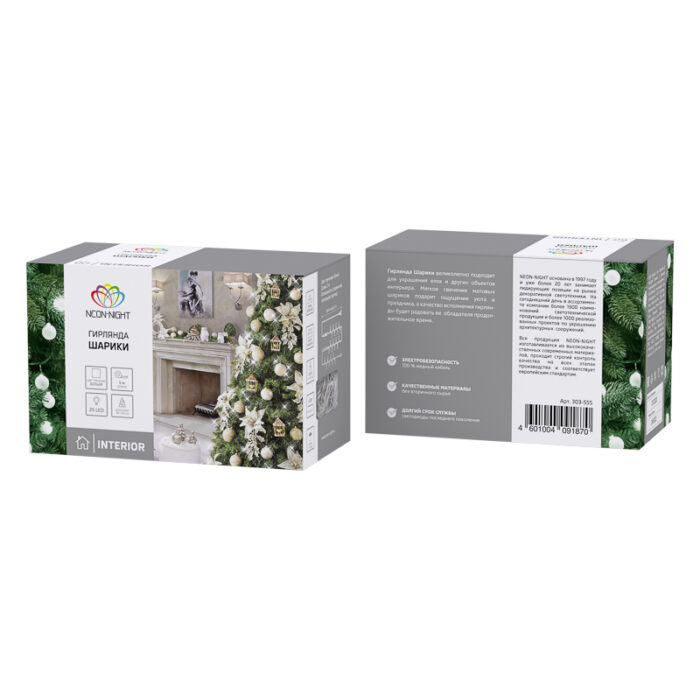 Белая гирлянда с крупными шариками 25 мм — стильное и уютное решение для оформления дома. Даёт мягкий равномерный свет без мерцаний и перегруза. Подходит для ёлок, интерьера, фотозон. Безопасная, готовая к подключению, работает от сети. Идеальна для спокойной, аккуратной подсветки.