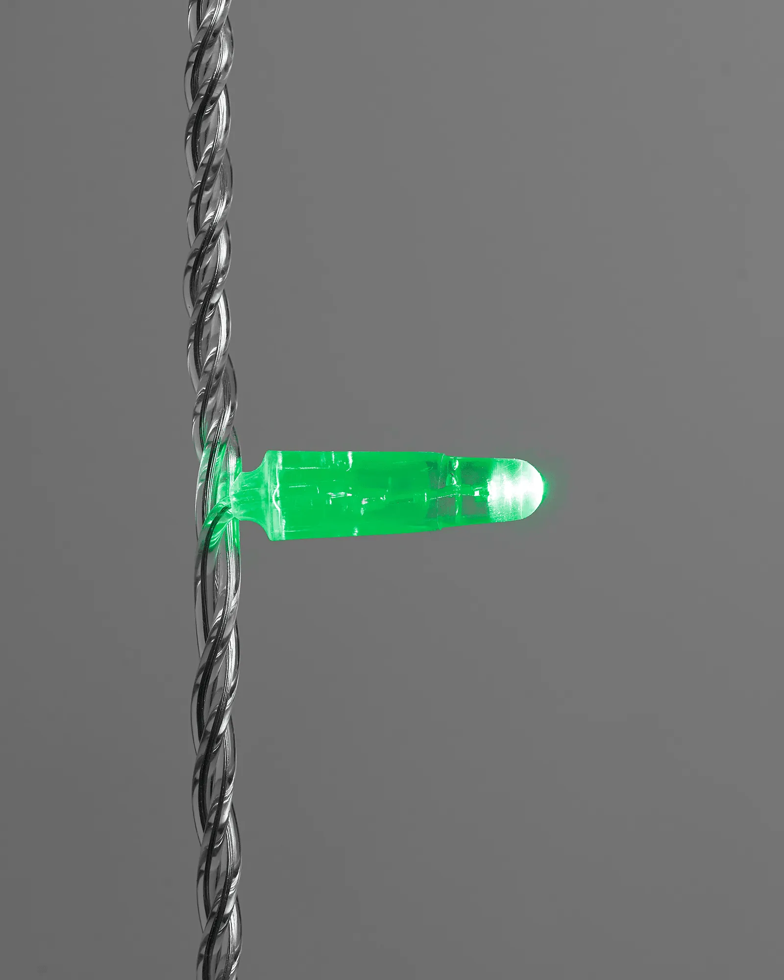 Гирлянда с насыщенным зелёным свечением — яркий акцент для оформления деревьев, ёлок, фасадов и заборов. Подходит для улицы, устойчива к морозу и влаге. Прозрачный провод.