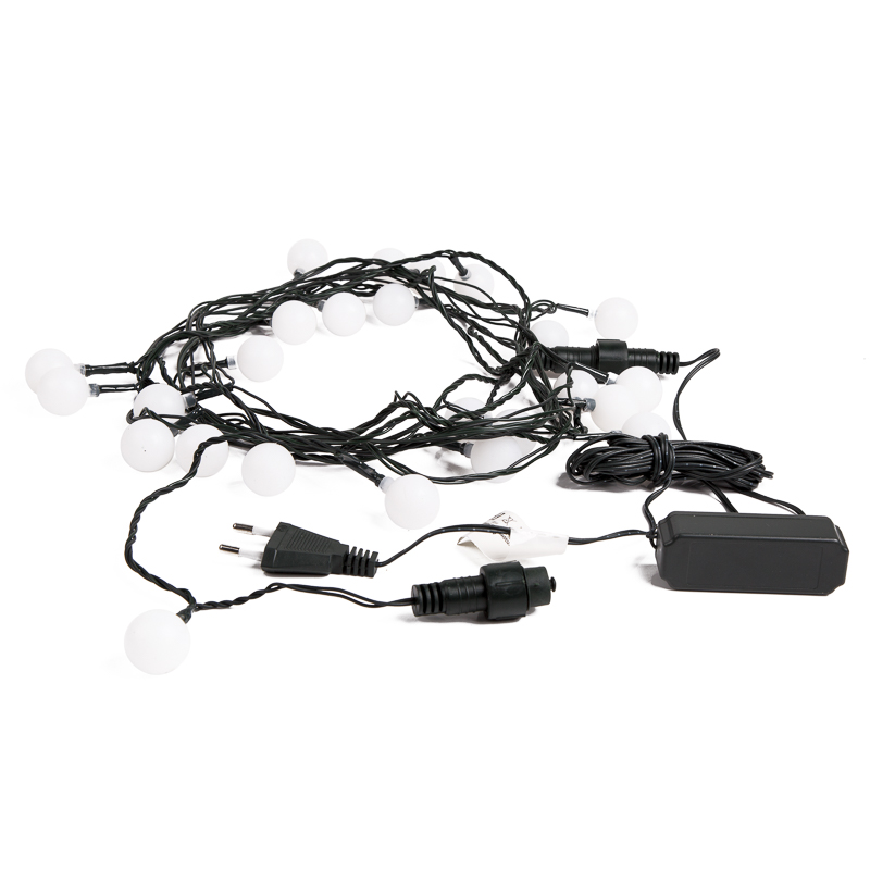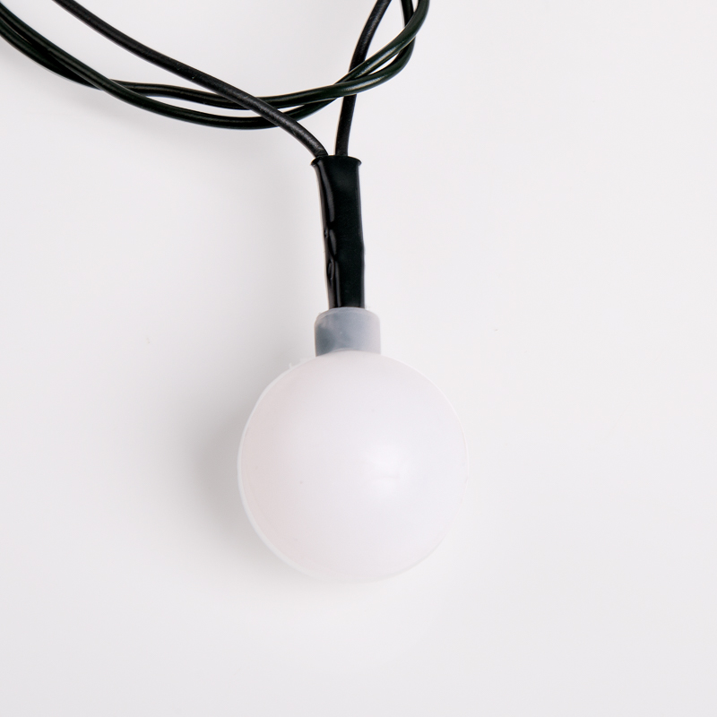 Если хочется не просто украсить, а создать настоящую атмосферу праздника, эта гирлянда подойдёт идеально. Каждый из 25 шариков — это яркий RGB-светильник с быстрой сменой цвета. Цвета переливаются динамично, эффектно, словно гирлянда "дышит".