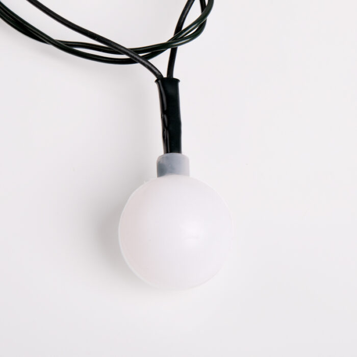 Размер шарика — важная деталь. 25 мм — это уже не точка, а полноценный элемент декора. Его видно даже при дневном свете. Светодиоды внутри дают равномерное и насыщенное свечение, не слепят, не мигают без повода — только живой, продуманный эффект смены цвета.