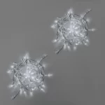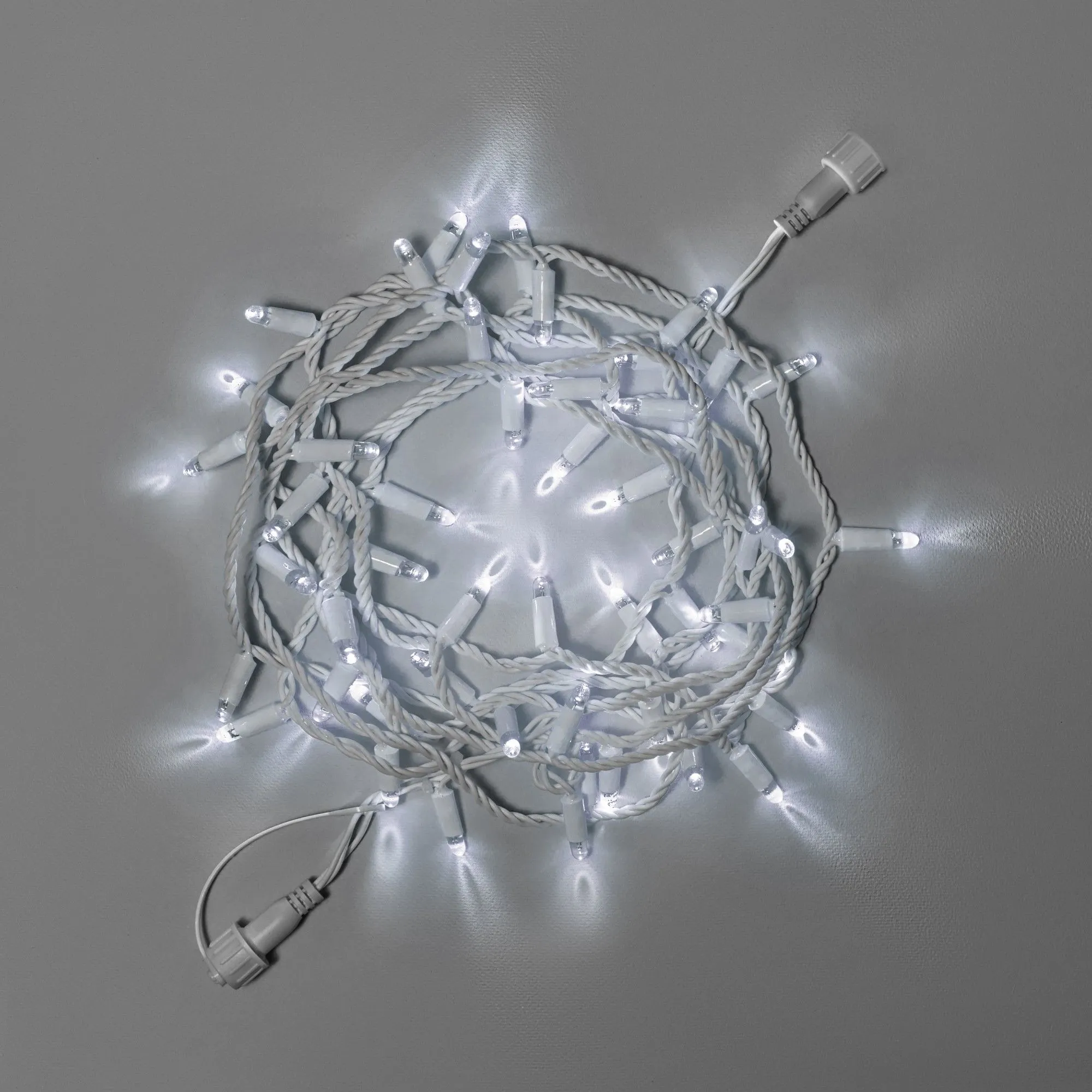 Длина — 10 метров, возможно последовательное соединение до 10 гирлянд в одну линию. Это удобно при оформлении длинных заборов, периметров участка или деревьев с крупной кроной.