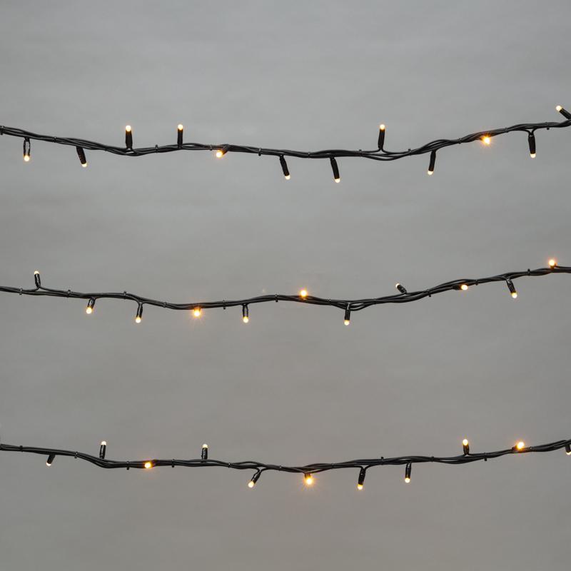 Гирлянда Нить управляемая 20 м Тепло-Белая с динамикой, 230 В, 240 LED, Провод Чёрный Каучук, IP67