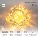 Гирлянда Нить 20 м Тепло-Белая с Мерцанием, 200 LED, Белый Каучук, IP67, NN