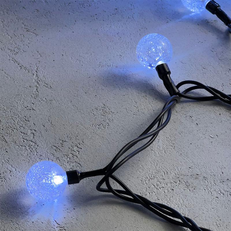 Гирлянда Шарики 10 м Белая Статика, 100 LED, Чёрный ПВХ, IP54, LTC
