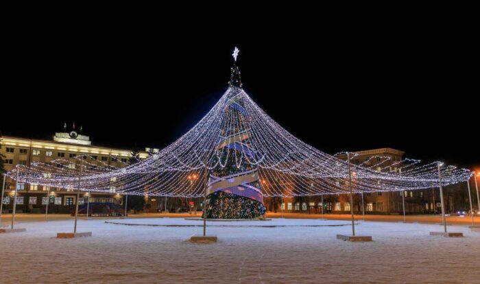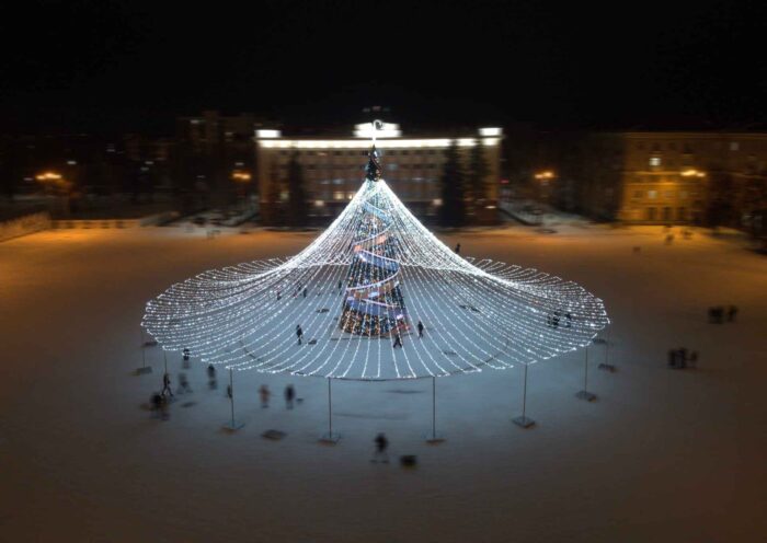 Световой шатёр — это не просто фигура, а архитектурная доминанта, которая формирует праздничное пространство с первого взгляда. Модель JOYLED СК-352 — это впечатляющая конструкция высотой 10 метров и шириной 24 метра. Она мгновенно превращает улицу, площадь или входную группу в центр внимания, задаёт масштаб и атмосферу события.