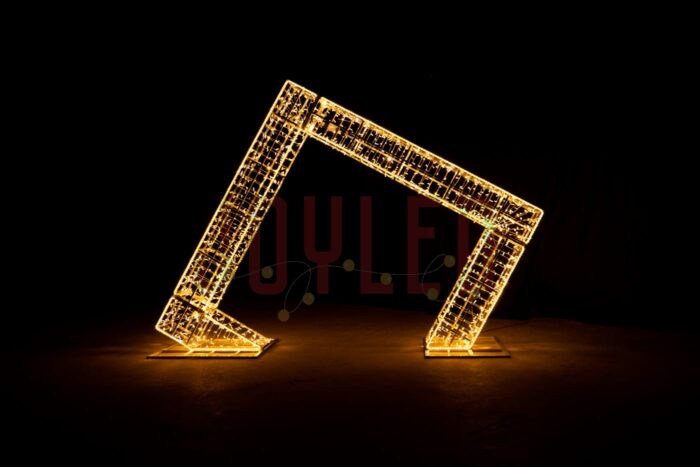 Световая арка «Ромб» от JOYLED — это современная уличная конструкция, которая превращает любое пространство в эффектную фотозону и создаёт праздничное настроение для жителей и гостей города. Благодаря лаконичной форме и золотому свечению, арка выглядит элегантно и универсально: она одинаково хорошо вписывается в классические новогодние декорации и современные городские проекты.