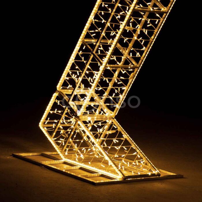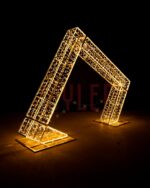 Световая арка «Ромб» — стильная уличная конструкция для новогоднего и праздничного оформления. Высота 3 м и золотое свечение делают её эффектным акцентом для парков, площадей, ТРЦ и входных групп. Прочный алюминиевый каркас, IP65 и морозостойкость до –50 °C гарантируют надёжность. Отлично подходит для фотозон, праздничных мероприятий и городских украшений.