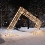 При необходимости арки можно соединять в линию, создавая протяжённые световые коридоры. Это решение особенно востребовано при оформлении городских парков и площадей, где важно создать атмосферу праздника и движение потоков людей через декоративные элементы.