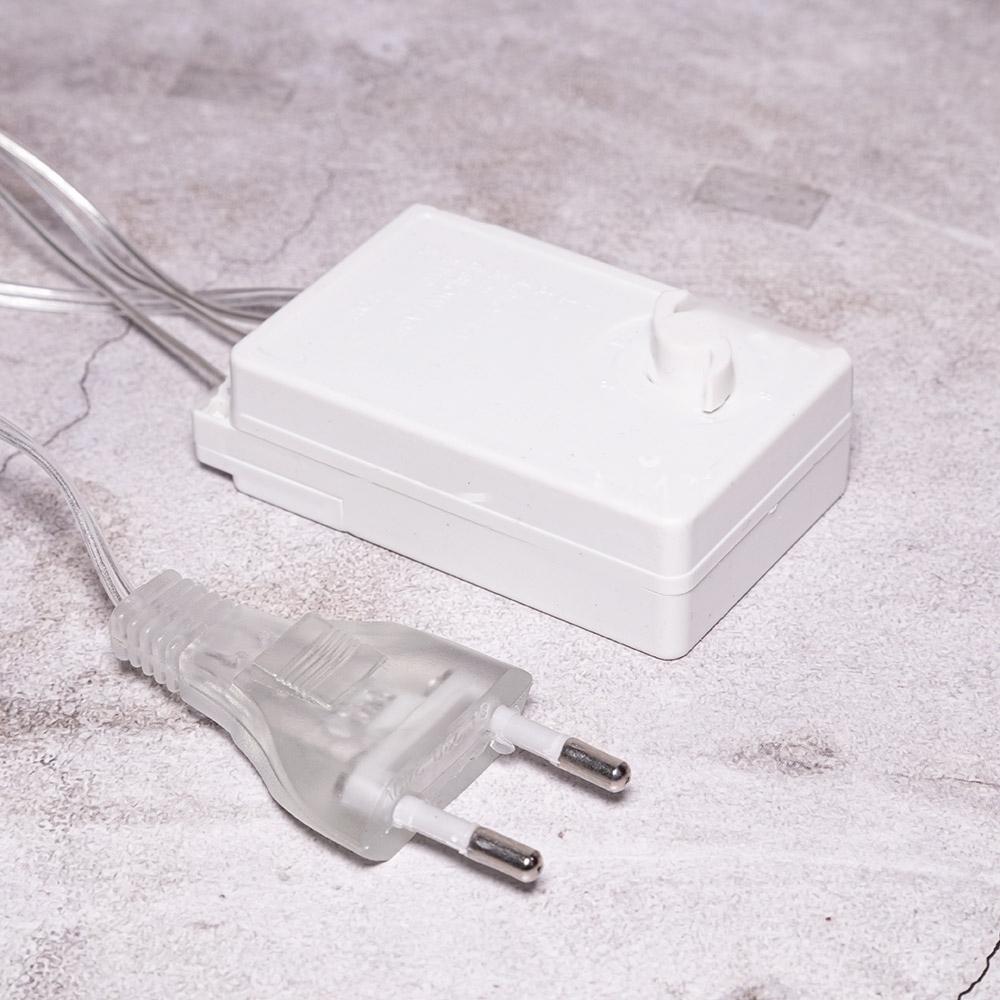 Гирлянда бахрома с белым светом и 8 режимами свечения. Мягкое мерцание, динамика, бегущий огонь и другие эффекты. Подходит для оформления окон, арок, стен и витрин внутри помещения. Прозрачный провод, подключение в комплекте, соединяется до 10 штук. Гарантия — 12 месяцев.