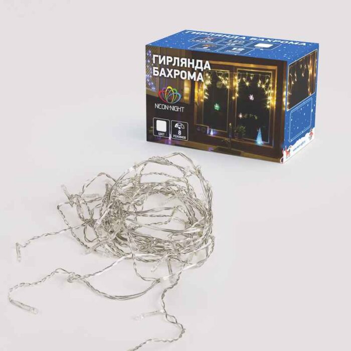 Интерьерная гирлянда бахрома с холодным белым светом и 8 динамическими режимами. Подходит для оформления окон, ниш, зеркал, фотозон и витрин. Лёгкая и компактная. Прозрачный провод, встроенный блок питания с длинным кабелем. Гарантия — 12 месяцев.
