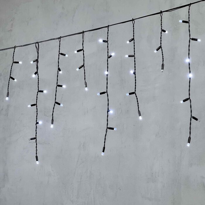 Гирлянда Бахрома с Колпачками 3,1 м Белая с Мерцанием, 120 LED, IP65, черный ПВХ, LTC