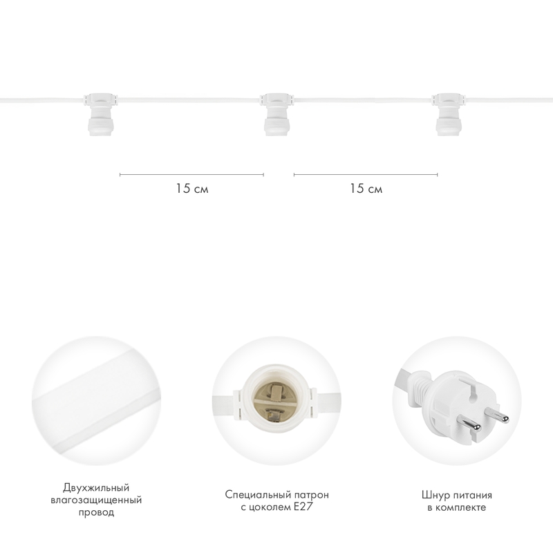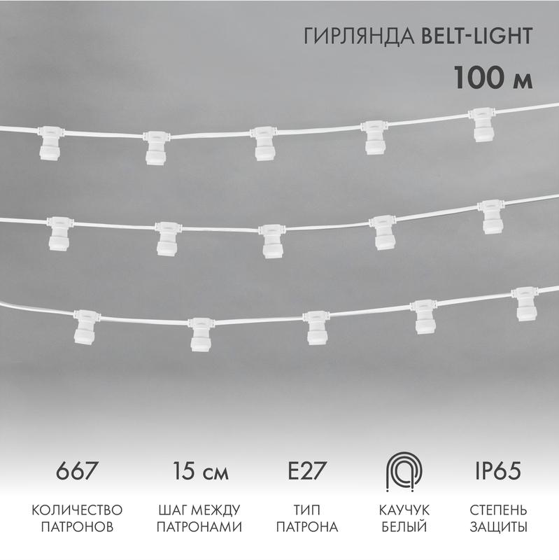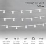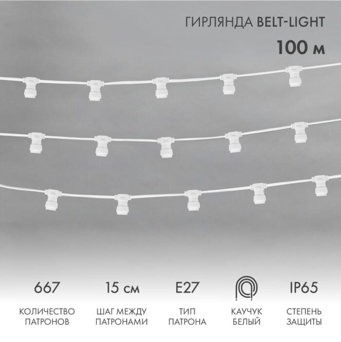 Белт-Лайт 100м, Провод Белый ПВХ, Шаг 15 см, 667 Патронов, E27, IP65