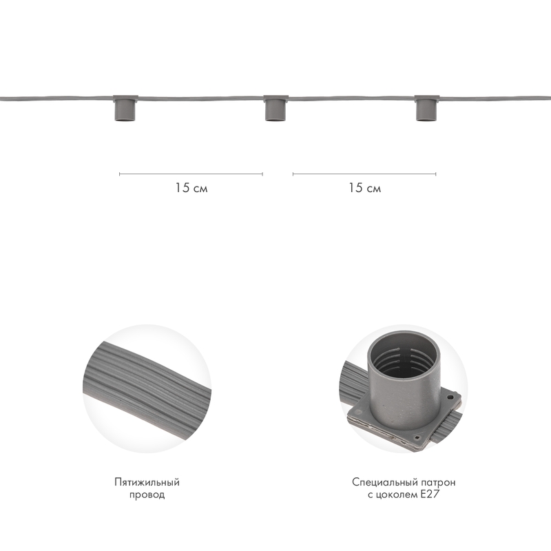 Белт-Лайт 100м, Провод Серый ПВХ, Шаг 15 см, 665 Патронов, E27, IP20