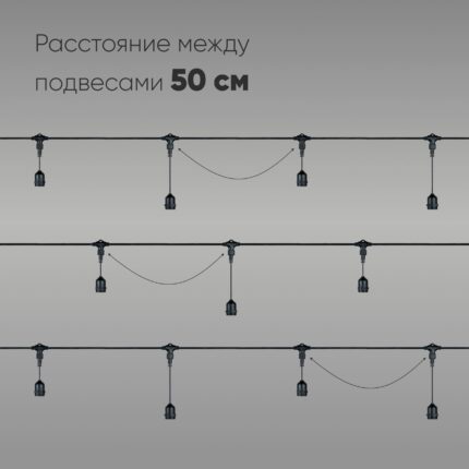 При установке гирлянду следует фиксировать к стальному тросу, так как она не обладает свойством самонесущей конструкции.