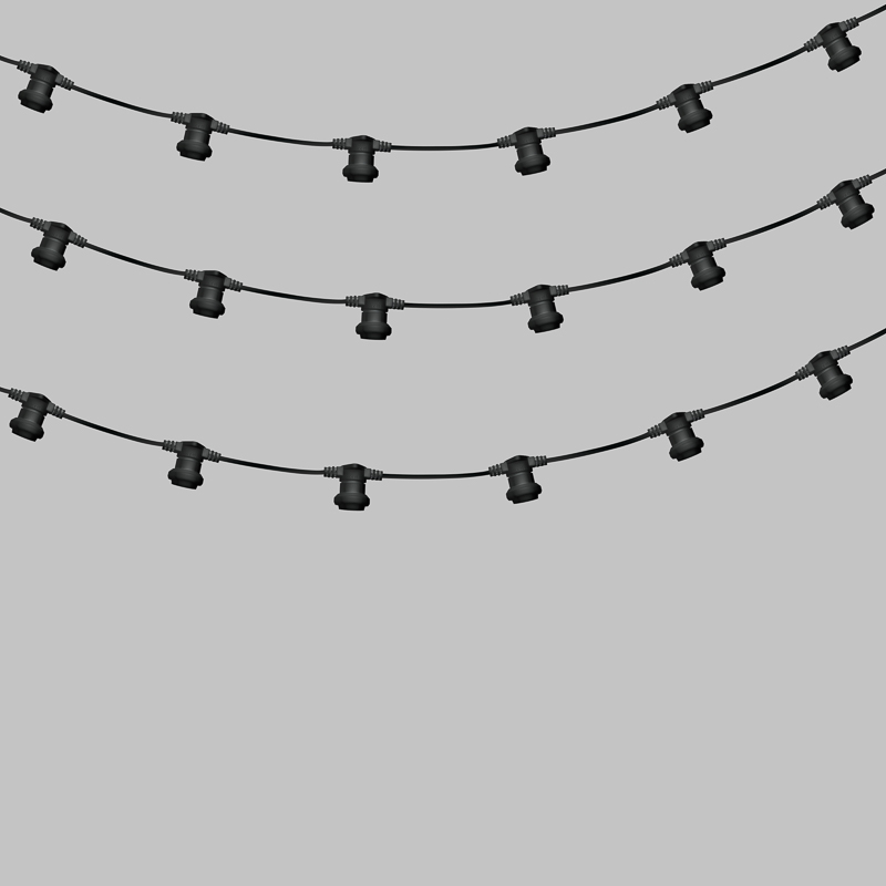 Гирлянда выполнена в виде устойчивого к морозам двухжильного резинового ПВХ-кабеля с патронами под лампы с цоколем Е27. Кабель имеет круглую форму и отличается небольшим весом. Каждый патрон снабжен специальным уплотнителем, обеспечивающим уровень защиты IP65 вне зависимости от положения лампы.