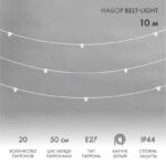 Белт-Лайт Лофт 10м, Провод Белый Каучук, Шаг 50 см, 20 Патронов, IP44