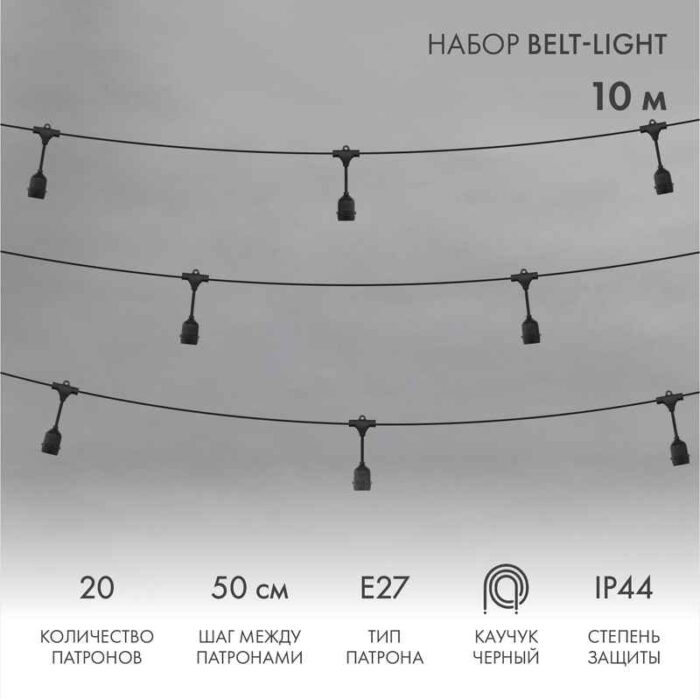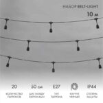 Белт-Лайт Лофт 10м, Провод Черный Каучук, Шаг 50 см, 20 Подвесных Патронов, IP44