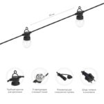 Эта гирлянда состоит из электропровода, облаченного в изоляционную оболочку из эластичного, прочного и устойчивого к морозам каучука черного цвета. Общая длина провода составляет 10 метров.