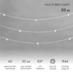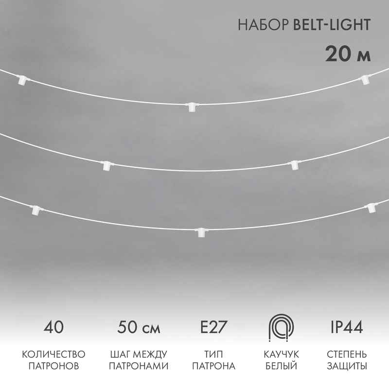 Белт-Лайт Лофт 20м, Провод Белый Каучук, Шаг 50 см, 40 Патронов, IP44