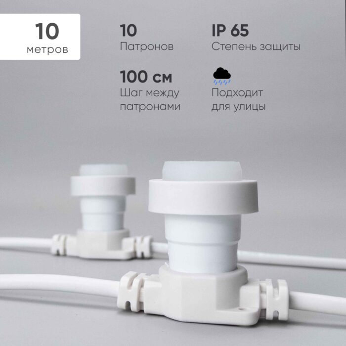 Белт-Лайт LTC 10м, Провод Белый Каучук, Шаг 100 см, 10 Патронов, IP65