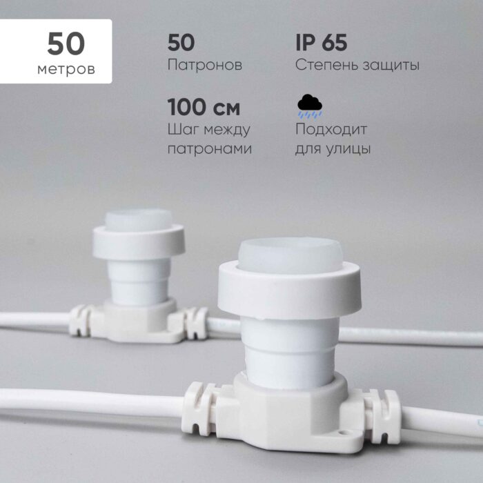 Белт-Лайт LTC 50м, Провод Белый Каучук, Шаг 100 см, 50 Патронов, IP65