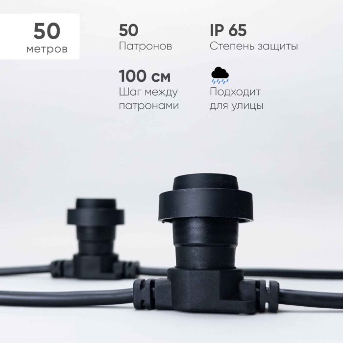 Белт-Лайт LTC 50м, Провод Черный Каучук, Шаг 100 см, 50 Патронов, IP65