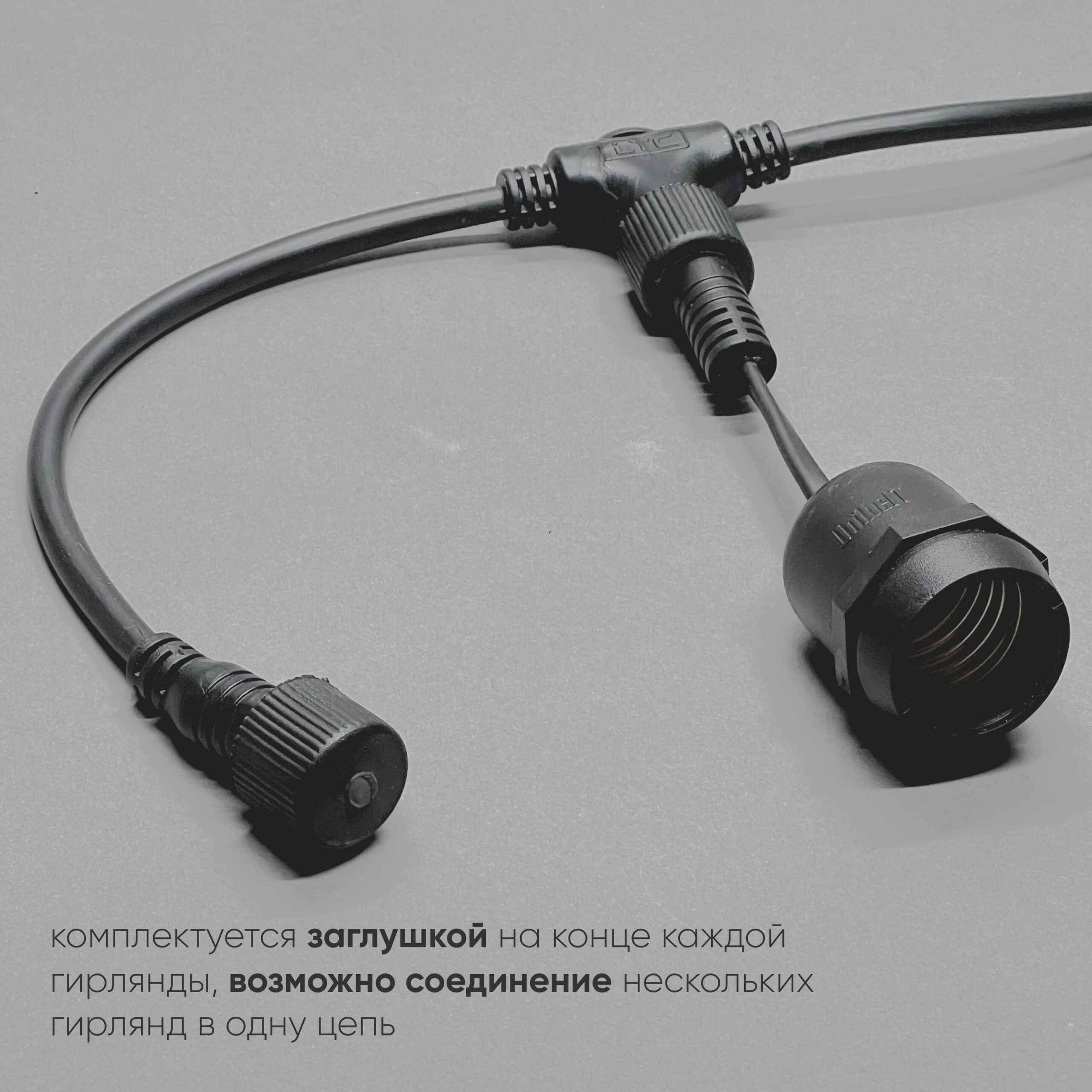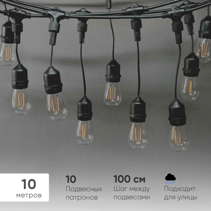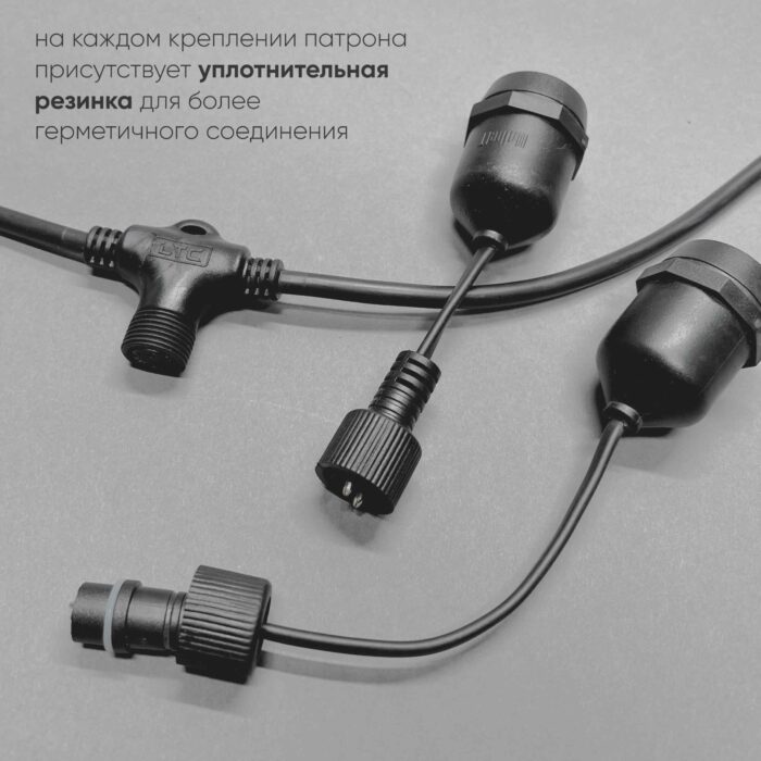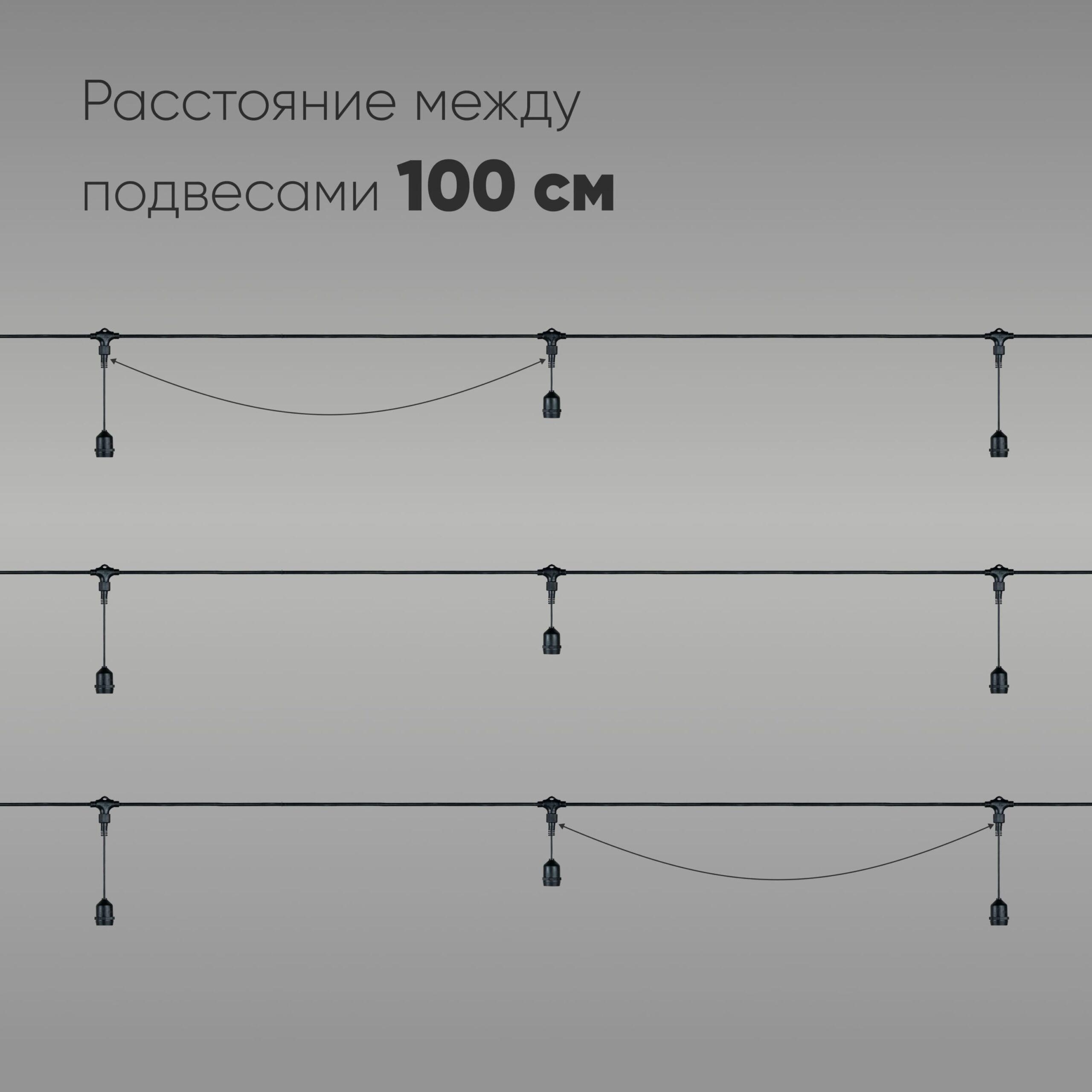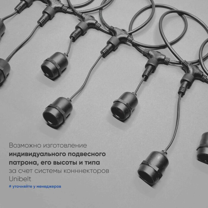 Белт-Лайт UNIBELT 10м, Провод Черный Каучук, Шаг 100 см, 10 Подвесных Патронов, IP65