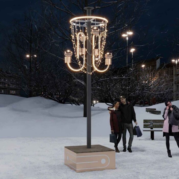 Световой столб высотой 4 метра легко становится центром праздничной композиции. Он заметен издалека, формирует настроение для посетителей и гостей, помогает сделать локацию узнаваемой. Фигура одинаково хорошо работает как самостоятельный арт-объект и как часть комплексного оформления в сочетании с другими световыми инсталляциями JOYLED.