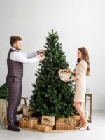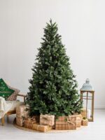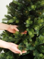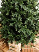 Раскидистая красавица с привлекательным украшением и высоко расположенной макушкой имеет мягкую плотную хвою, не осыпается и служит неопределенно долго. Большая складывающаяся елка оснащена надежным креплением, и как взрослые, так и дети без проблем справятся с ее сборкой. Необычная модель с прочным каркасом и пышными ветвями — отличный выбор для новогоднего оформления интерьера, а также для создания оригинальных композиций из елочных игрушек для тематических фотосессий. Конусная форма изделия безопасна для детей и домашних животных.