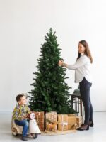 Высокая и пышная зеленая красавица стоит на устойчивой металлической подставке с ножками и надежным креплением. Узкая елка включает прочный металлический каркас и удобную разборную конструкцию. Сборка не вызывает затруднений и она станет отличной и безопасной заменой живому дереву.