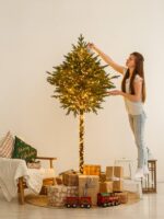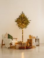 Дизайнерская световая елка Торшер Люкс со встроенной гирляндой станет великолепным элементом интерьера и создаст атмосферу рождественских праздников. Хвоя элегантной классической формы и спокойного зеленого оттенка, а диоды излучают теплый белый свет. Этот вариант новогоднего декора идеально подходит для создания выразительных композиций на тематических фотосессиях.
