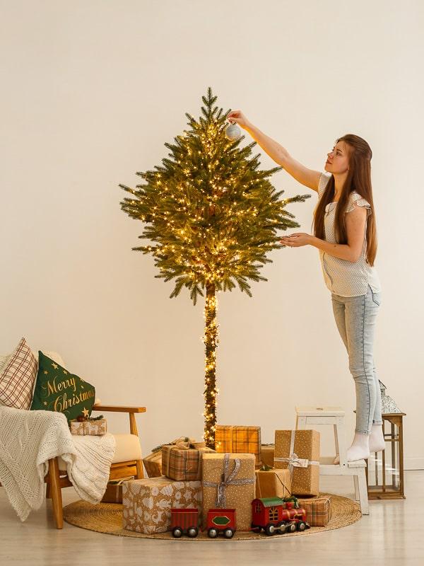 Дизайнерская световая елка Торшер Люкс со встроенной гирляндой станет великолепным элементом интерьера и создаст атмосферу рождественских праздников. Хвоя элегантной классической формы и спокойного зеленого оттенка, а диоды излучают теплый белый свет. Этот вариант новогоднего декора идеально подходит для создания выразительных композиций на тематических фотосессиях. Прекрасная ёлка высотой 2.1 м, выполненная из хвои, трудно отличимой от натуральной, и с гирляндой, усыпанной множеством огоньков, оформлена металлическим стволом, обтянутым пленкой ПВХ. Искусственная ёлка-торшер быстро собирается и не занимает много пространства.