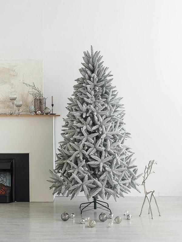 Элегантная снежная ель создаст праздничное настроение как в доме, так и на даче, в квартире или офисе. Это отличная альтернатива натуральному дереву. Стильная дизайнерская ель с густыми раскидистыми ветвями имеет аккуратную конусообразную форму. Она легко собирается, а мелкие хвойные иголки с мягкими кончиками не колются. Ствол также обрамлен иголками, что делает его еще более естественным. Это дерево с пушистыми веточками и заостренной макушкой станет красивым интерьерным аксессуаром и источником праздничного настроения для всей семьи!