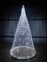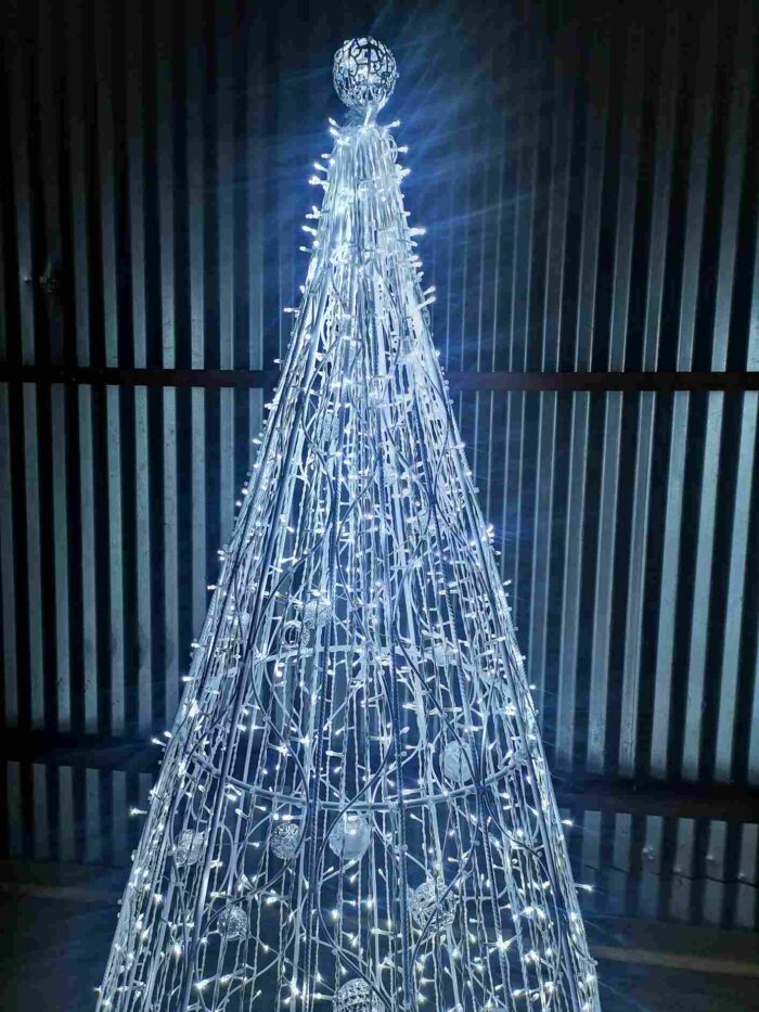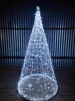 Елка-КОНУС 3D — это дизайнерская световая инсталляция, выполненная в форме геометрически точного конуса. В отличие от традиционных новогодних елей, она смотрится минималистично, современно и строго. Такая фигура особенно хорошо вписывается в городскую среду, коммерческие фасады, общественные зоны и интерьерные пространства с современной архитектурой.