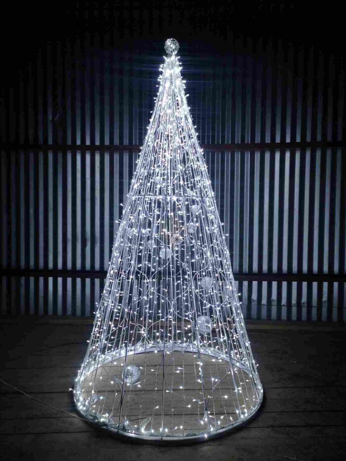 Элегантная уличная елка в форме конуса с равномерной подсветкой по всей поверхности. Подходит для оформления входных зон, площадей, скверов, улиц, бизнес-центров и ТРЦ. Высота — от 1,5 до 5 метров. Цвет свечения — любой на выбор.