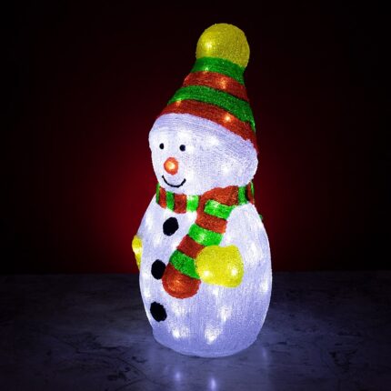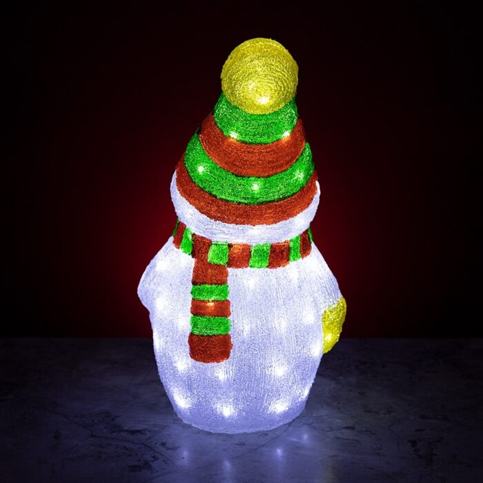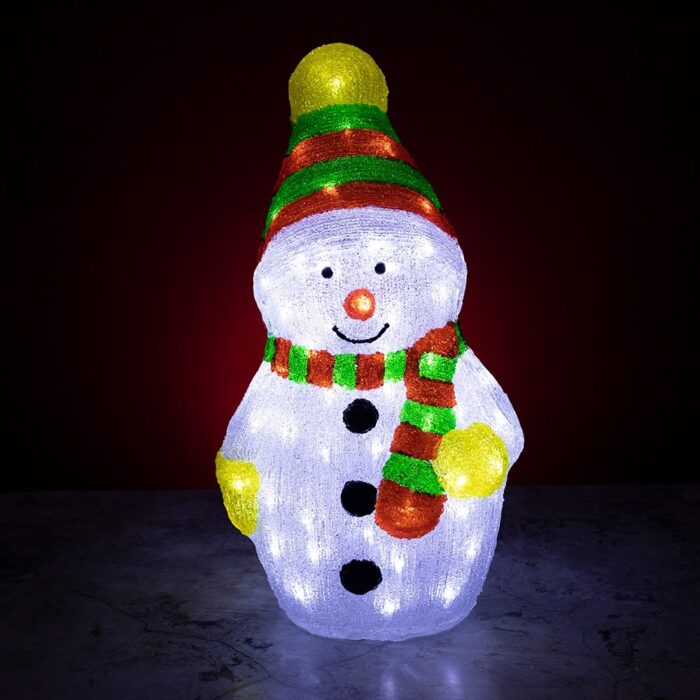 Акриловая световая фигура «Снеговик» высотой 55 см — это эффектный элемент праздничного оформления, который идеально подойдёт для небольших пространств. Он оживит входную зону, украсит витрину магазина, создаст акцент в фотозоне или на террасе. Компактный, устойчивый и яркий — этот снеговик легко станет частью зимнего декора, не перегружая пространство.