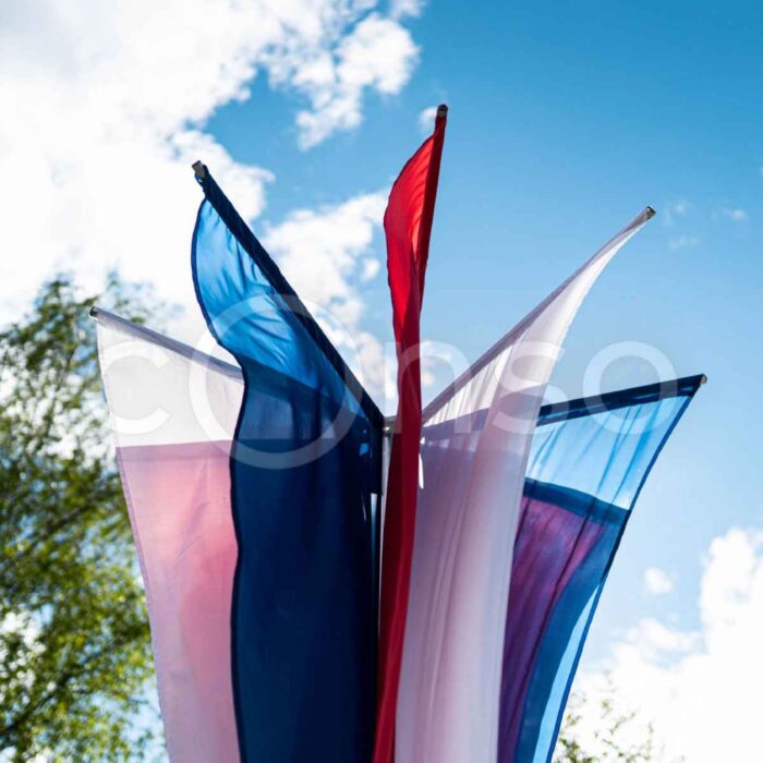 Флаговая конструкция ФПК 003 ― это надёжное и эффектное решение для праздничного оформления, которое подчеркнёт значимость события и создаст атмосферу торжества.