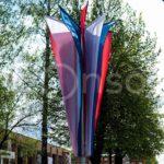 Флаговая конструкция ФПК 003 ― эффектное решение для уличного оформления ко Дню Победы, Дню города и других праздничных мероприятий. Объёмная 3D-фигура на каркасе из оцинкованной стали с покраской устойчива к погодным условиям, рассчитана на круглогодичную эксплуатацию и служит более 50 000 часов.