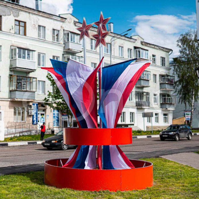 Флаговая конструкция ФПК 005 от JOYLED — это масштабная уличная световая фигура, выполненная в форме флага, символизирующего торжественность, патриотизм и праздничную атмосферу. Эта композиция пользуется особым спросом в преддверии памятных дат, таких как 9 Мая, День Города или государственные мероприятия. Благодаря своим размерам (2,8×4,6×2,8 м) и запоминающемуся силуэту, она становится главным акцентом на любой городской площади, в парке, у фасада административного здания, культурного центра или ТЦ.