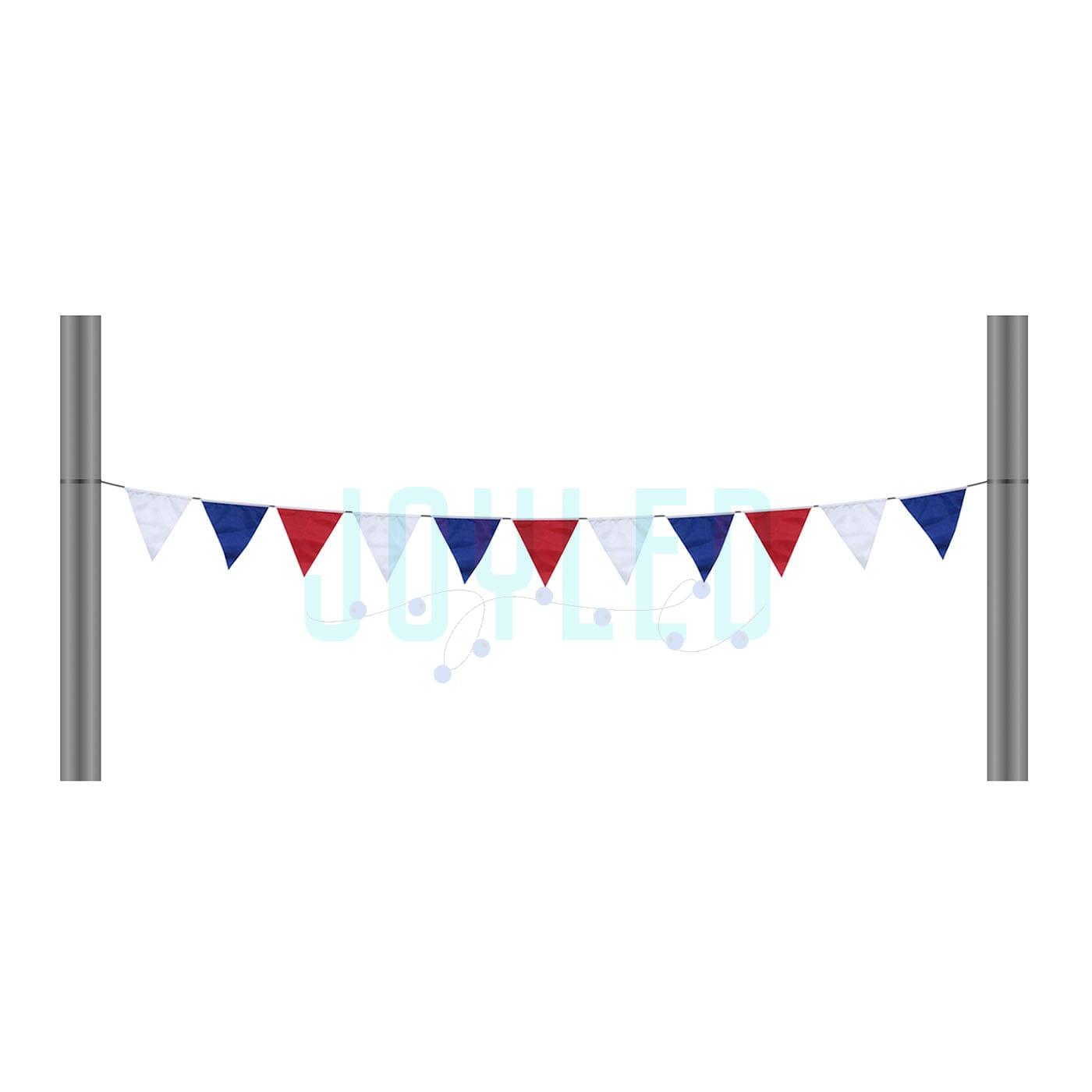 Флаговая световая перетяжка «Ф 001» — лаконичное решение для праздничного оформления улиц, фасадов и проездов. Устанавливается на трос между опорами. Защита IP65, рабочий диапазон температур — от –50 до +40 °C. Подходит для Дня Победы, Дня города, корпоративных мероприятий. Изготовление и монтаж под ключ от JOYLED.