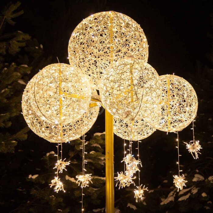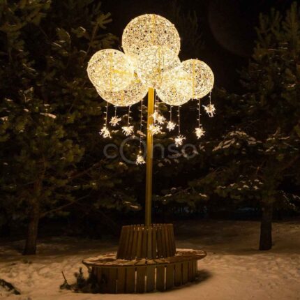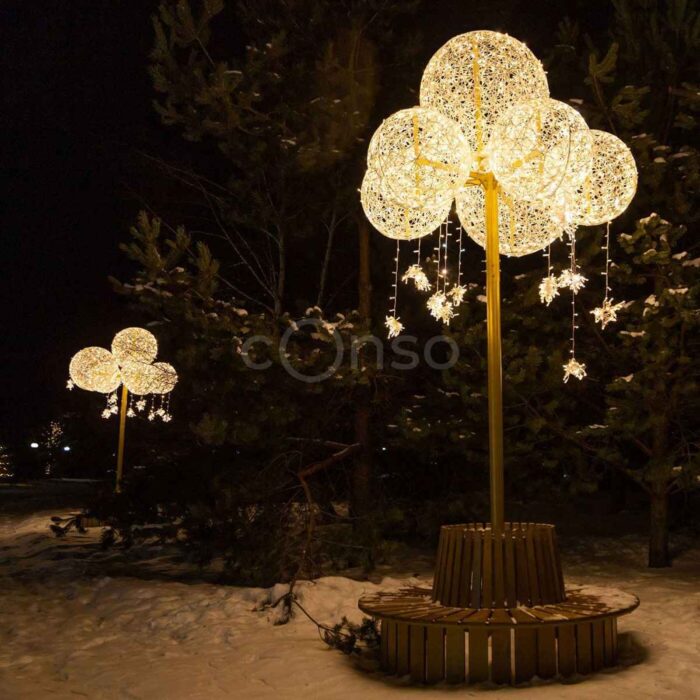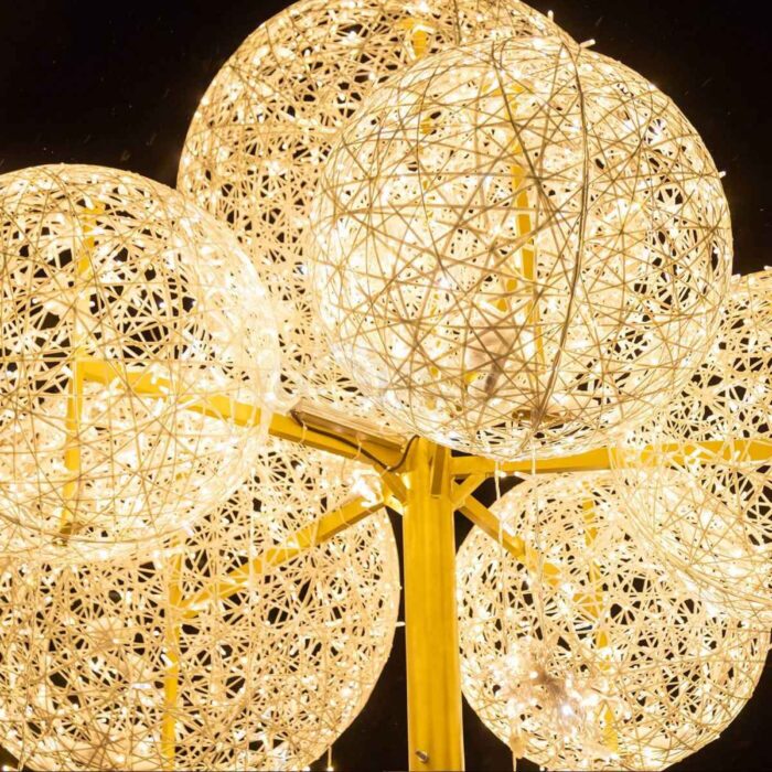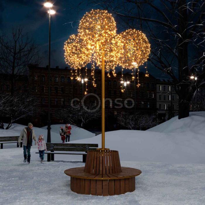 Световая фотозона со скамьёй «Одуванчики» от JOYLED — оригинальная инсталляция для парков, ТРЦ и городских площадей. Высота почти 5 метров и золотое сияние превращают её в точку притяжения для жителей и гостей города. Прочный алюминиевый каркас, защита IP65 и ресурс до 50 000 часов обеспечивают долгую и безопасную эксплуатацию.