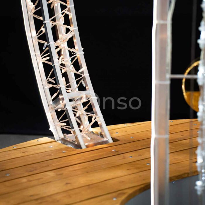 Каркас шара выполнен из алюминия — лёгкого и прочного материала, устойчивого к коррозии. Все соединения сварные, окраска — порошковая, для максимальной стойкости.