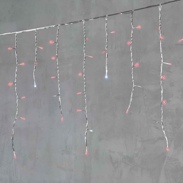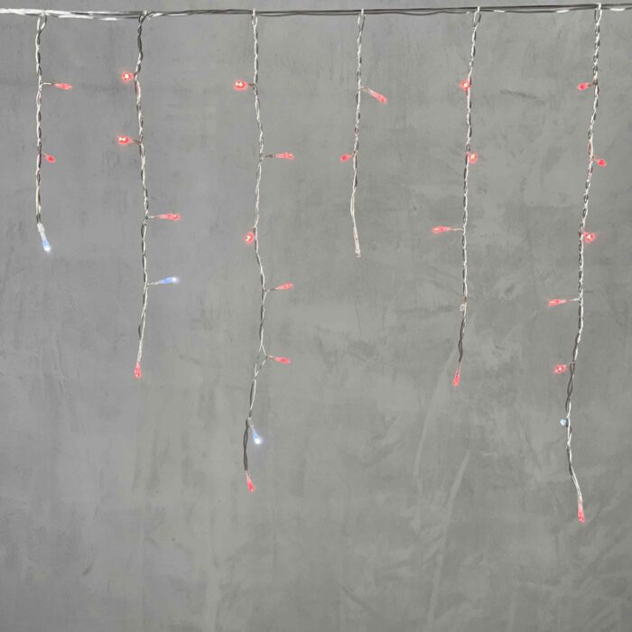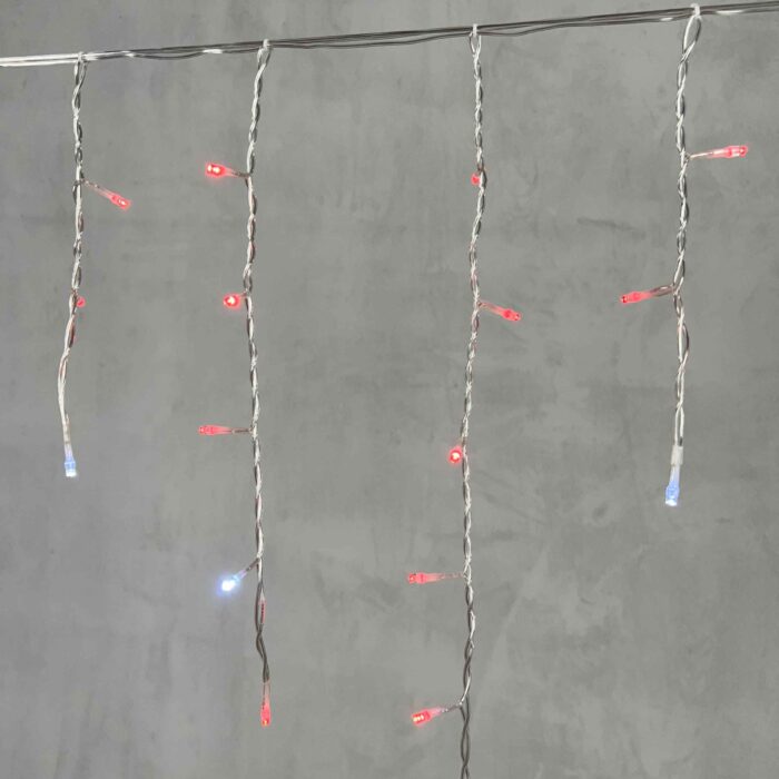Гирлянда Бахрома 3,1 x 0,5 м Красная с Мерцанием Белого Диода 220В, 150 LED, Провод Прозрачный ПВХ, IP54